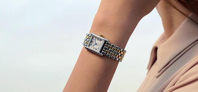 The Mini DolceVita represents watchmaking heritage at its most refined. Inspired by a legendary 1927 design, this rectangular timepiece brings Art Deco elegance into contemporary life. The silvered flinqué Roman dial with blue numerals and blued steel hands creates classic beauty, while the bi-material bracelet, combining steel with 18K yellow gold, demonstrates exceptional craftsmanship. Its distinctive proportions feel both vintage-inspired and thoroughly modern - the perfect match for a woman of taste.