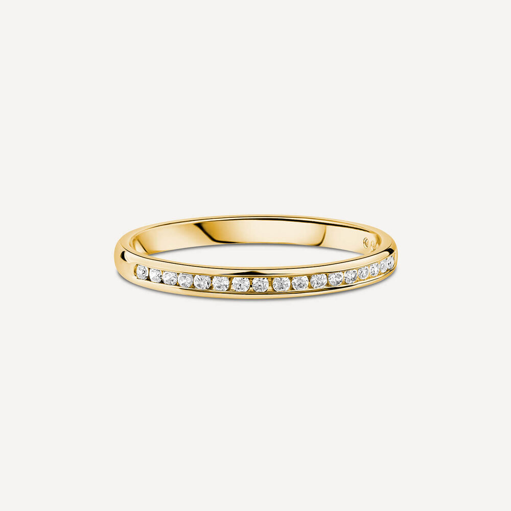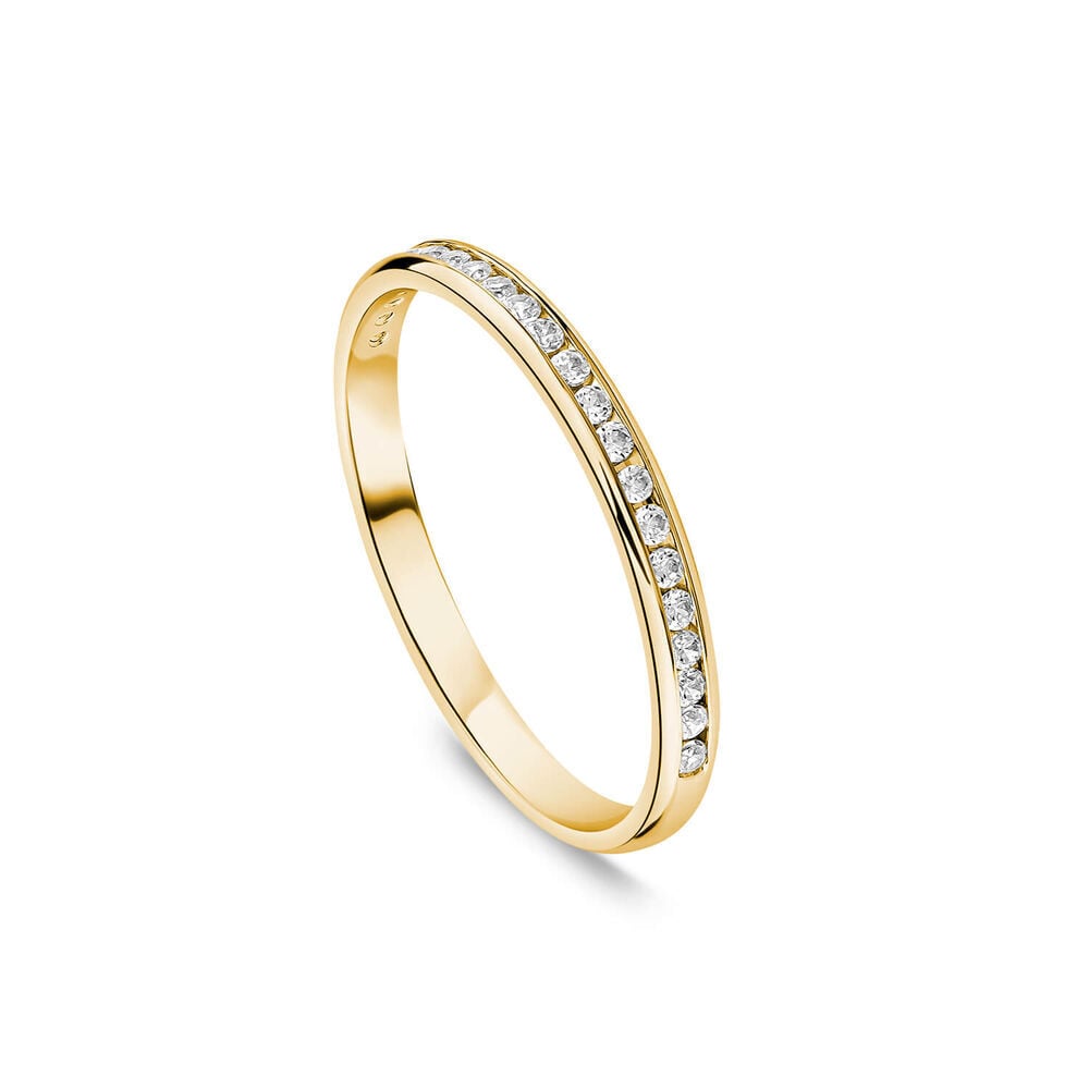 Channel Setting: Small diamonds set between two metal walls. Provides a smooth and continuous look.