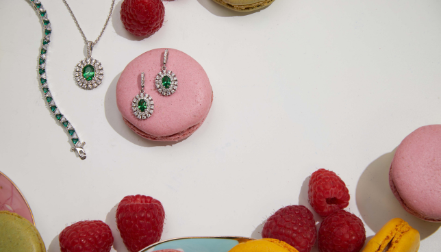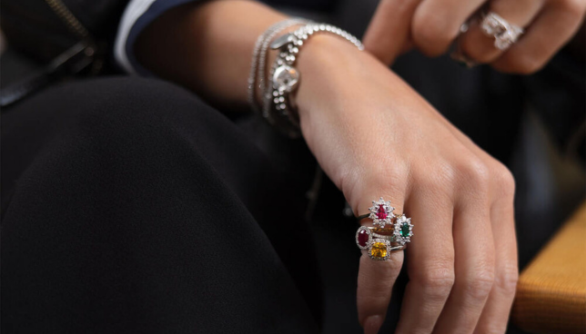Spring is not only about daytime dressing. It is also the season of weddings, dinners and special plans, and this is where colour takes on a more polished edge. Pieces finished with cubic zirconia or diamonds catch the light beautifully, giving blue and green tones a brighter, more refined finish. Styled with a simple dress or clean tailoring, they bring just enough glamour without feeling too much.
