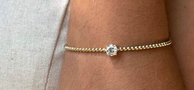 A bangle is a perfect party piece, moving with you as you celebrate. This 1.00ct lab-grown diamond sits within a distinctive granule textured setting, surrounded by tiny gold beads that create flowing movement on your wrist. It's substantial enough to feel special but comfortable enough to forget you're wearing it (even after hours of dancing), while the warm yellow gold tone complements all black outfits and bold colours in equal measure.