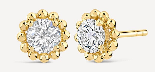 When you're dancing until the early hours, you need earrings that won't weigh you down. These substantial studs deliver serious sparkle while the beaded gold setting adds the Born Granule’s signature textured finish that photographs beautifully. Designed for all-night comfort, they're secure enough for energetic celebrations and a fashion-forward addition to your outfit.