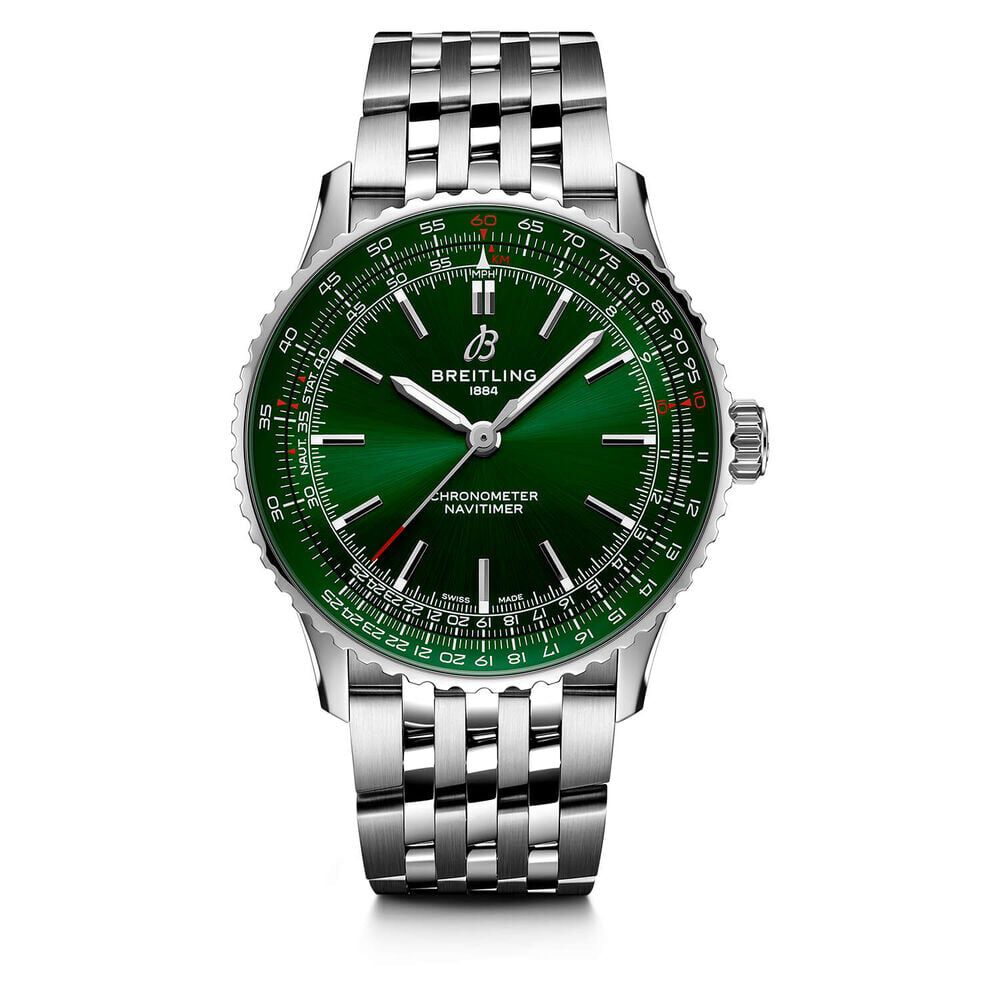 The 42mm stainless steel case is water-resistant up to 300 meters, ensuring toughness and reliability. The watch comes with either a three-row stainless-steel bracelet and it houses the COSC-certified Breitling Caliber 17 automatic movement, which provides up to 38 hours of power reserve.