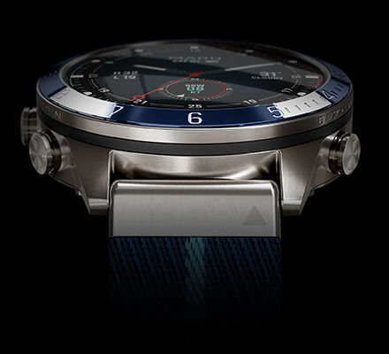 MARQ® Captain (Gen 2) is a modern tool watch like no other. It’s built from grade-5 titanium to be harder and stronger, with a stunning new AMOLED touchscreen display that gives you up to 16 days of battery life in smartwatch mode and up to 42 hours in GPS mode. A revolutionary regatta timer enhanced with GPS technology pinpoints the start like never before. Set your preferred wind speed and see a forecast on your watch face1, so you know what day you should take to the high seas. Exquisite nautical details, such as a navy ceramic bezel and jacquard weave strap, make this the perfect companion for any sailor.