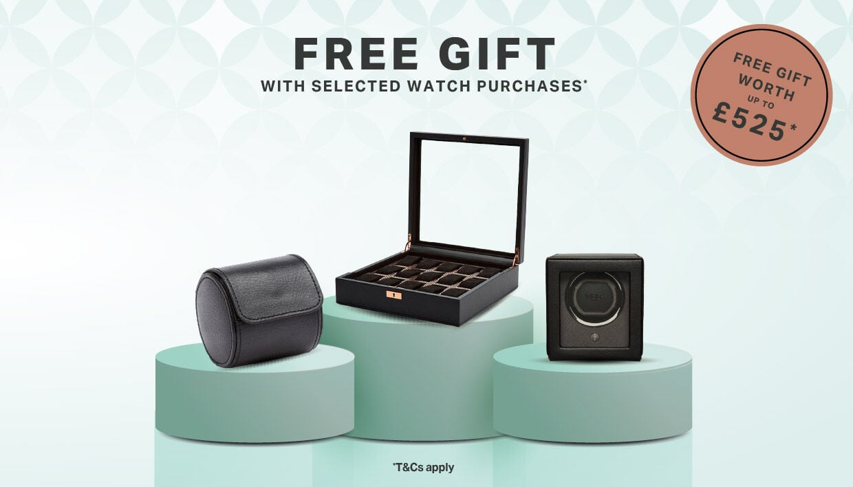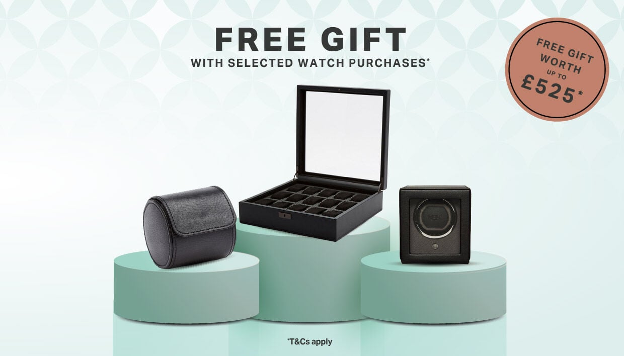 Receive a free gift worth up to £525 when you purchase selected luxury watches.* Mark a milestone or invest in something special and get a gift with purchase as a thank you from us.