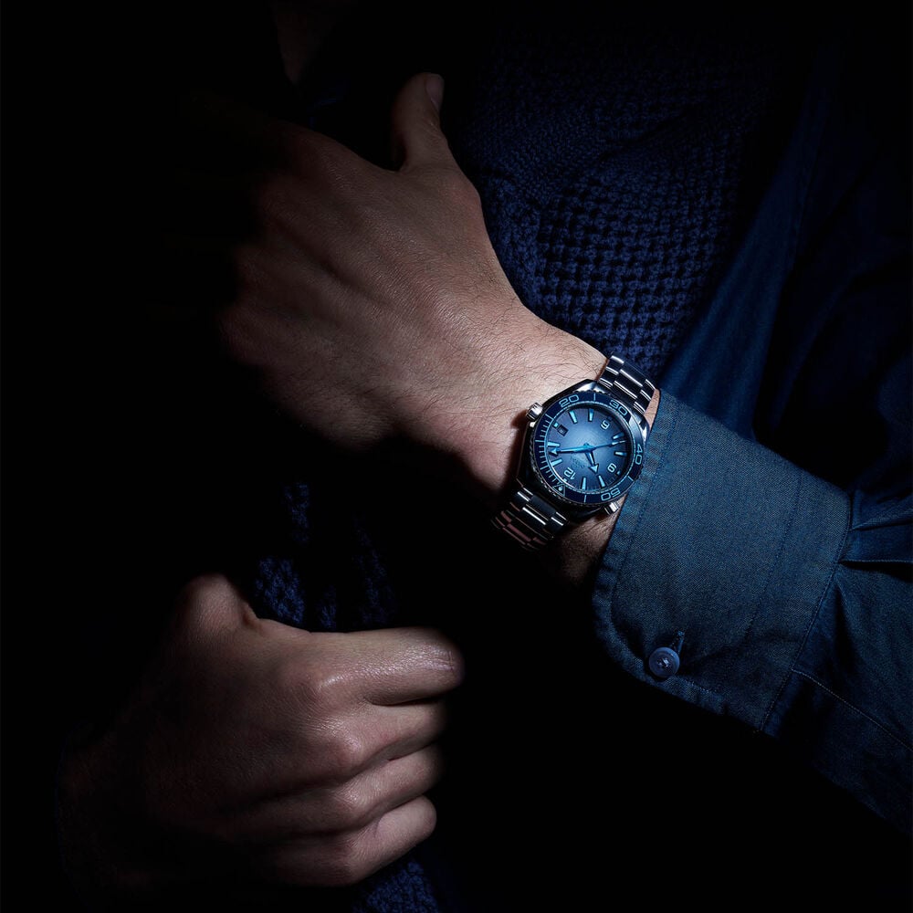The 39.5mm Planet Ocean 600M by OMEGA is a robust and stylish timepiece. Crafted with a stainless steel case and bracelet, it exudes durability and sophistication. The vertical brushed ceramic dial in Summer Blue, treated with PVD and varnished with a gradient finish, reflects the watch's water resistance level. The blue ceramic bezel, adorned with a light blue diving scale, enhances the watch's bold design. The blued hands and indexes, filled with light blue Super-LumiNova, provide excellent visibility in any lighting conditions.On the case back, a stamped commemorative Seamaster logo featuring Poseidon, trident, and two seahorses pays homage to OMEGA's heritage. Inside the watch ticks the OMEGA Co-Axial Master Chronometer calibre 8900, a reliable and precise movement. The Seamaster Planet Ocean 600M lives up to its name with a water resistance of 600 meters, making it suitable for deep-sea adventures. It also features a helium-escape valve, ensuring the watch's performance even in professional diving conditions. * *