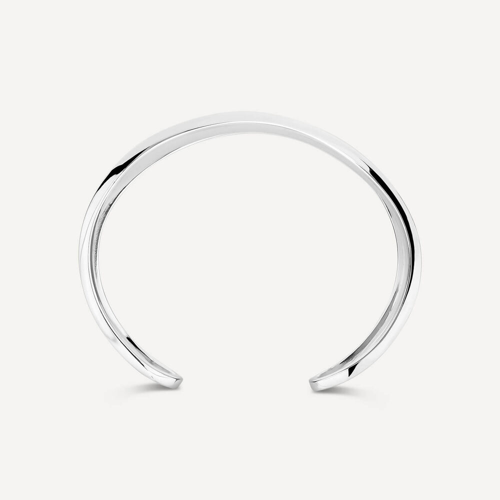 This sterling silver wide polished cuff bangle offers a sleek and modern design. Ideal for any occasion, it adds a touch of sophistication and elegance to your outfit.