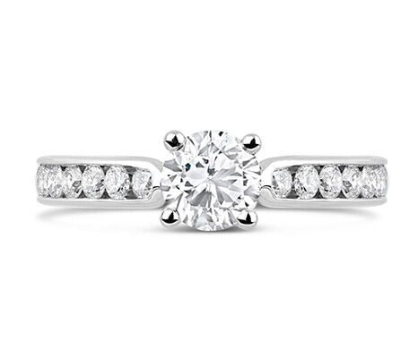 The IGI independently certified centre stone can shine alone in all its glory or be accompanied by sparkling Diamond Set shoulders. Each ring is crafted from 18ct Gold and set with Diamonds of a minimum H colour and Sl 1 clarity.